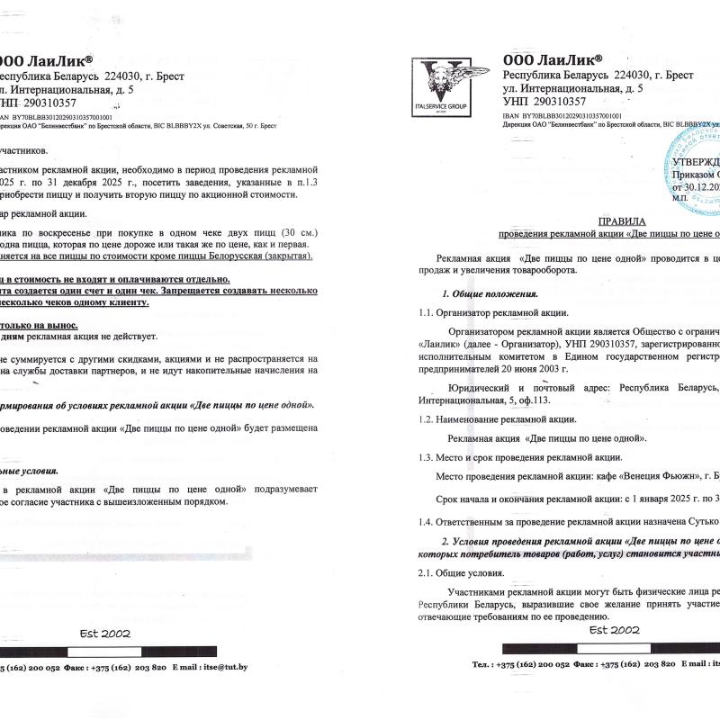 Две пиццы по цене одной Фьюжен